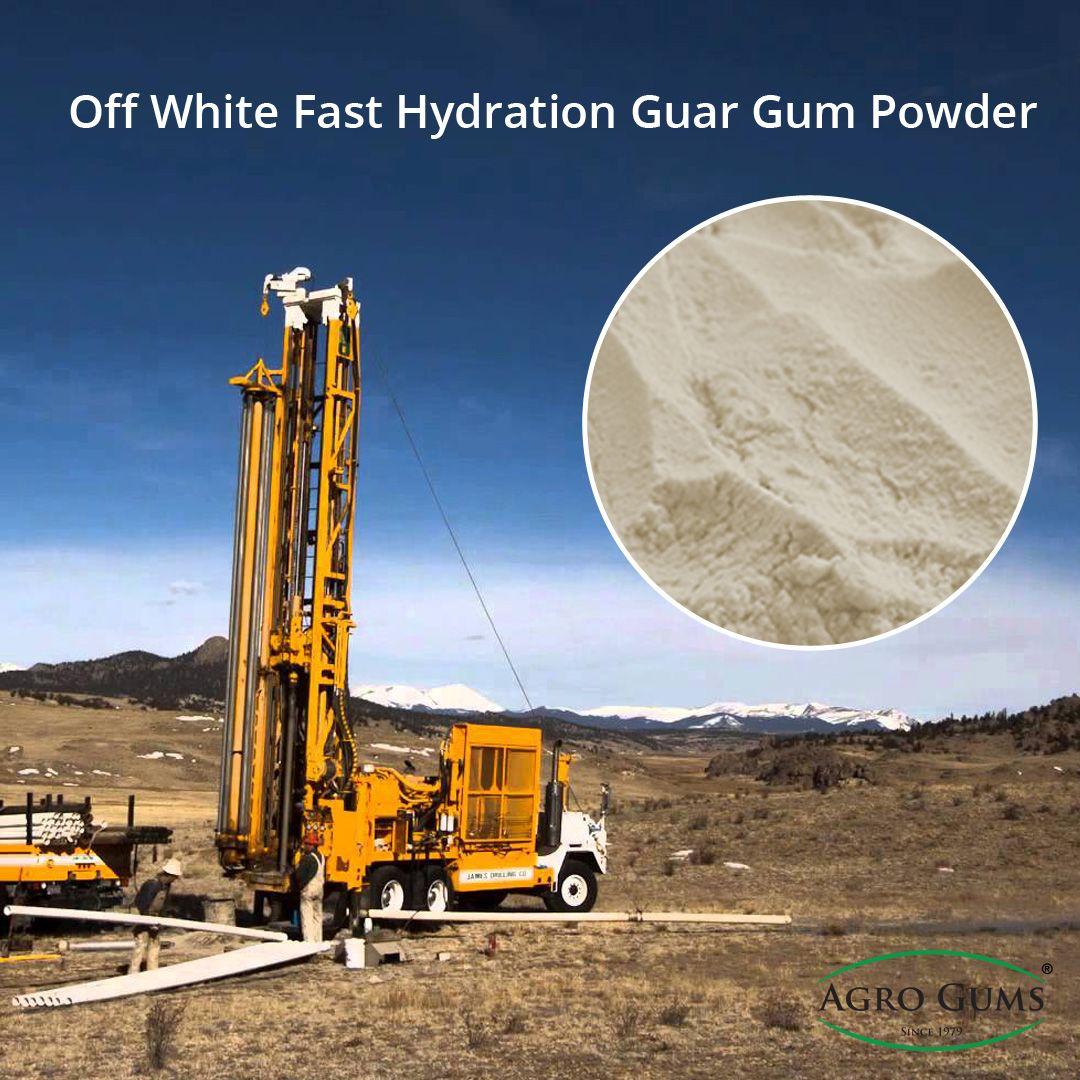 The most important property of the Guar is its ability to hydrate rapidly in cold water to attain a very high viscosity at relatively low concentrations. Its specific colloidal nature gives the solution an excellent thickening power which is 6 to10 times thicker than that obtained from starch. It is stable over a wide range of pH and it also improves the flow and effusion of the fluid. It is a superior friction loss reducing agent. The various names of fast hydration guar gum powder are diesel slurry guar gum, rapid hydrating guar gum powder, and fast hydration guar gum powder. The natural fast hydrating, dispersible and diesel slurry guar gum is suitable for all rheological requirements of oil well drilling, continuous fracturing and diesel slurry. The most common uses of the fast hydration guar gum powder are to increase the oil and gas production in oil drilling, gas drilling and other well drilling industries. It is widely used in oil well drilling due to its multi-function such as fluid and water loss control, viscosity control, lubrication. It is used for cooling of drill bits, mud drilling and cementing slurries, where immediate high viscosity and quick hydration is required. Guar gum helps to reduce friction in the holes, and so minimizing power requirements. Guar Gum products act to minimize water loss should occur in broken geological formations. Industrial grade guar gum powder is suitable for use in oil well fracturing, oil well stimulation, mud drilling and serves as a stabilizer, thickener and suspending agent. In oil well drilling guar gum used as a surfactant, fracturing fluid and synthetic polymer for all requirements of water based and brine based oil well drills. It attains high viscosity in 3 to 5 minutes of time.